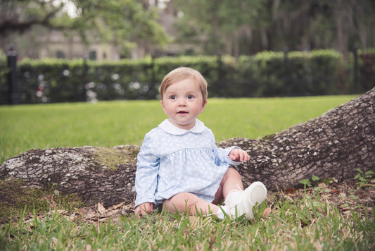 Sweetly Smocked Billie Bishop Dress - Light Blue Cord