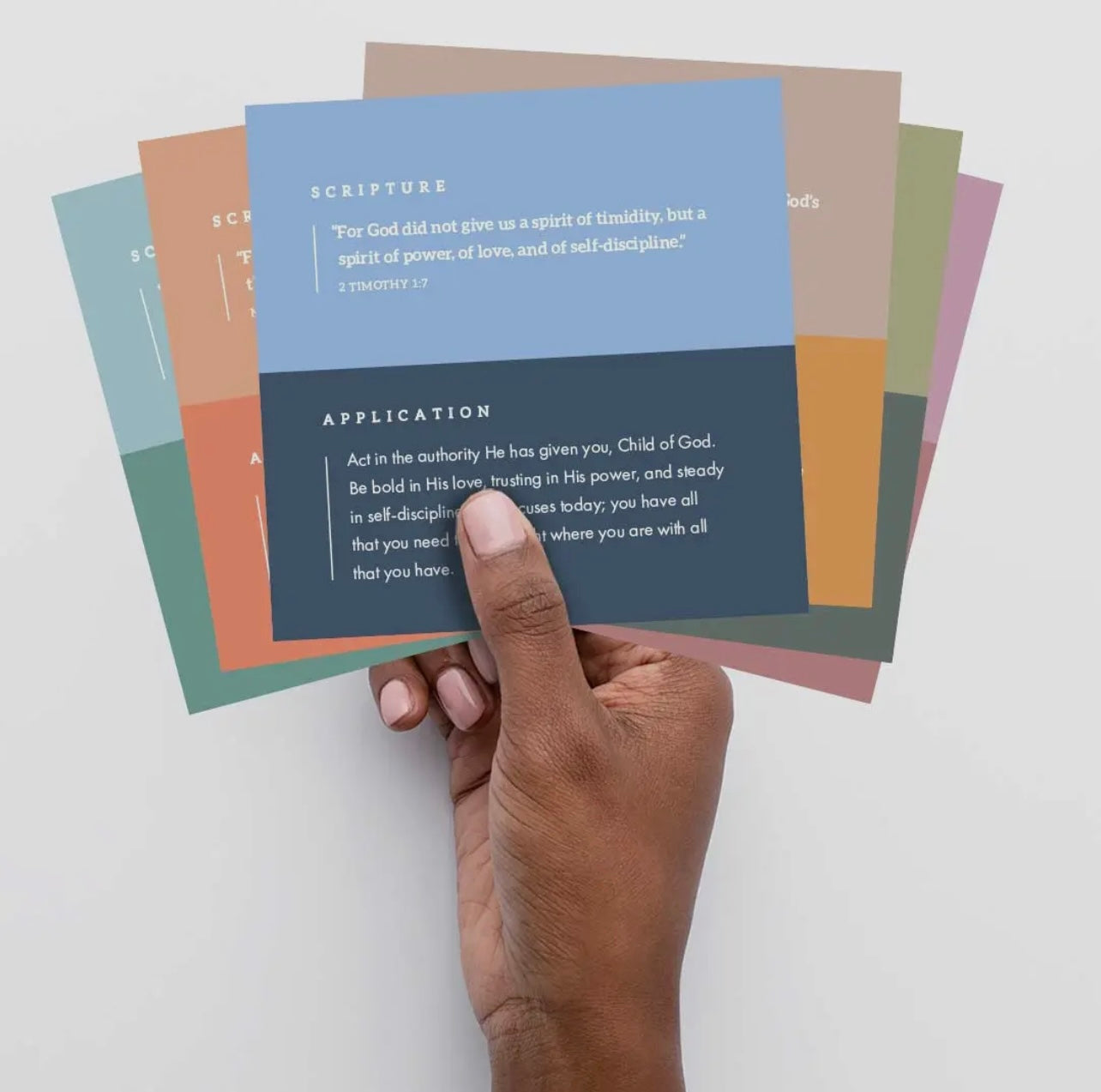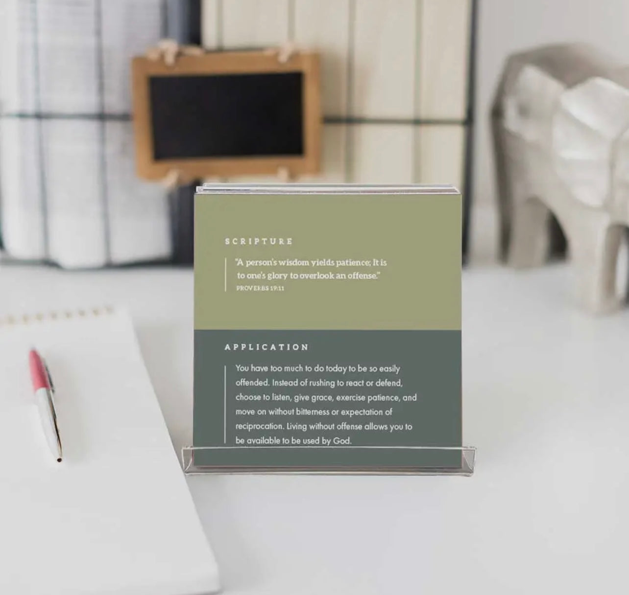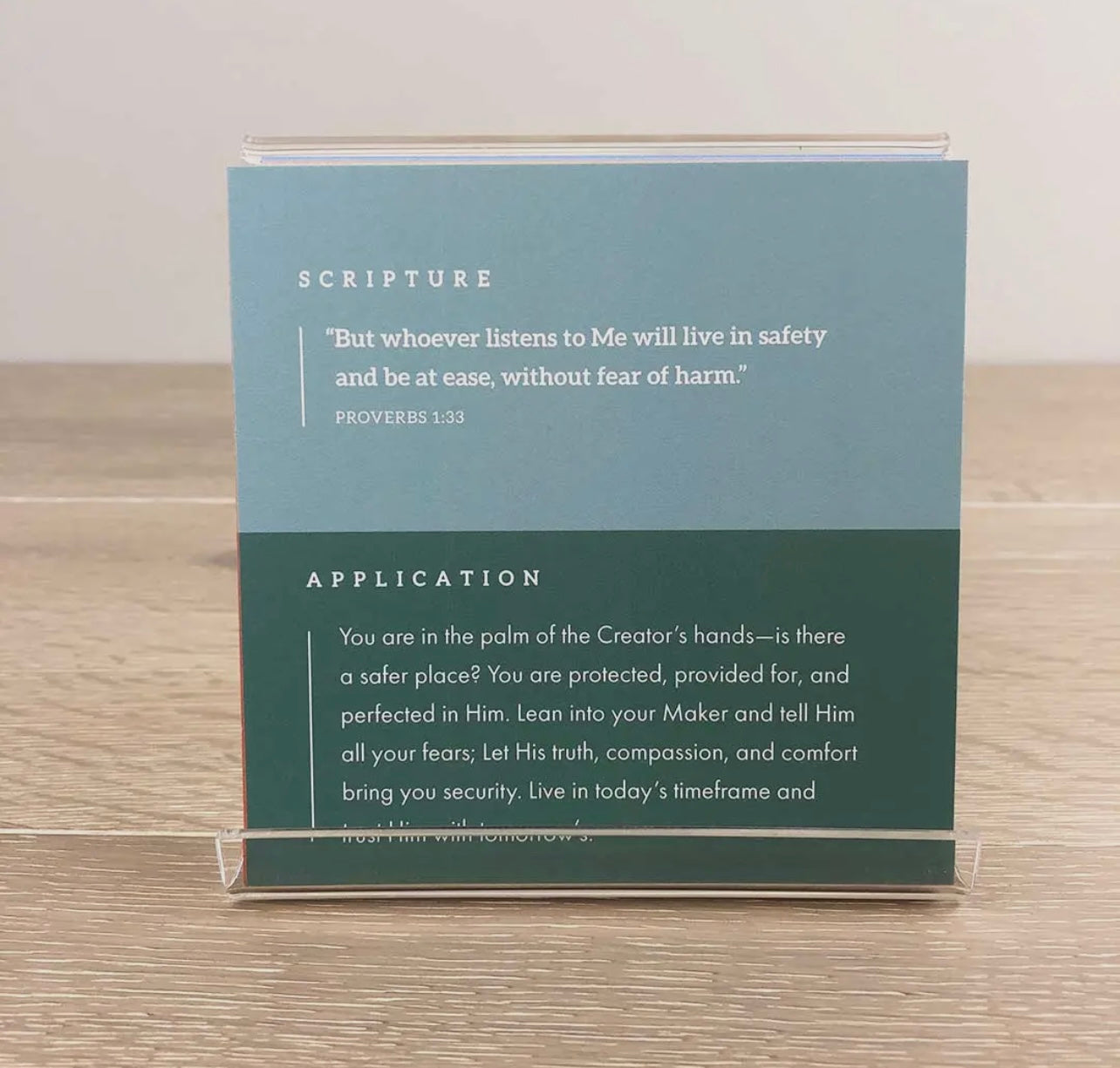 Have a family morning together through scripture. Marinate on that verse all week. 52 thick coated paper with acrylic stand.