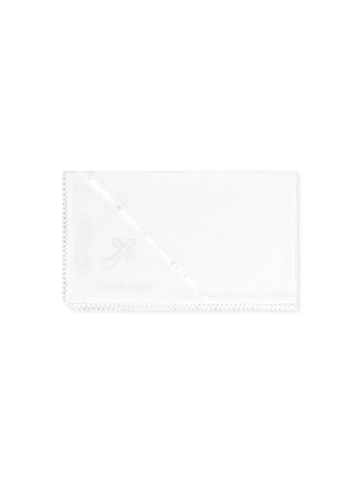 The Heirloom Blanket in Blessing White Batiste is a timeless treasure, featuring delicate ecru lace and an elegant cross embroidery. Crafted from soft, lightweight fabric, this blanket is perfect for christenings, baptisms, or special moments. A beautiful keepsake, it makes a meaningful gift to be cherished for generations.