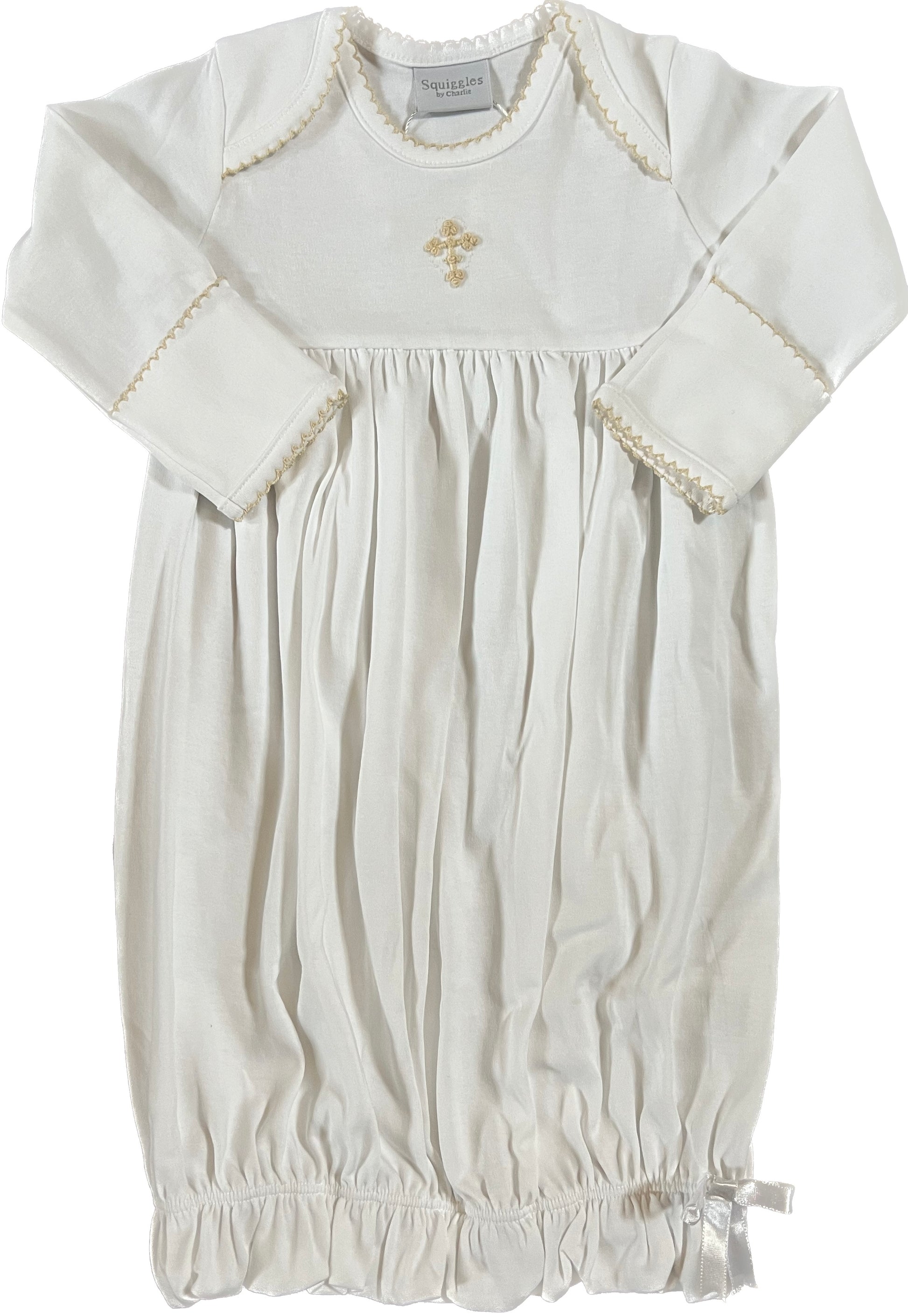 Beautiful 100% white pima cotton gown with hand stitched cross.