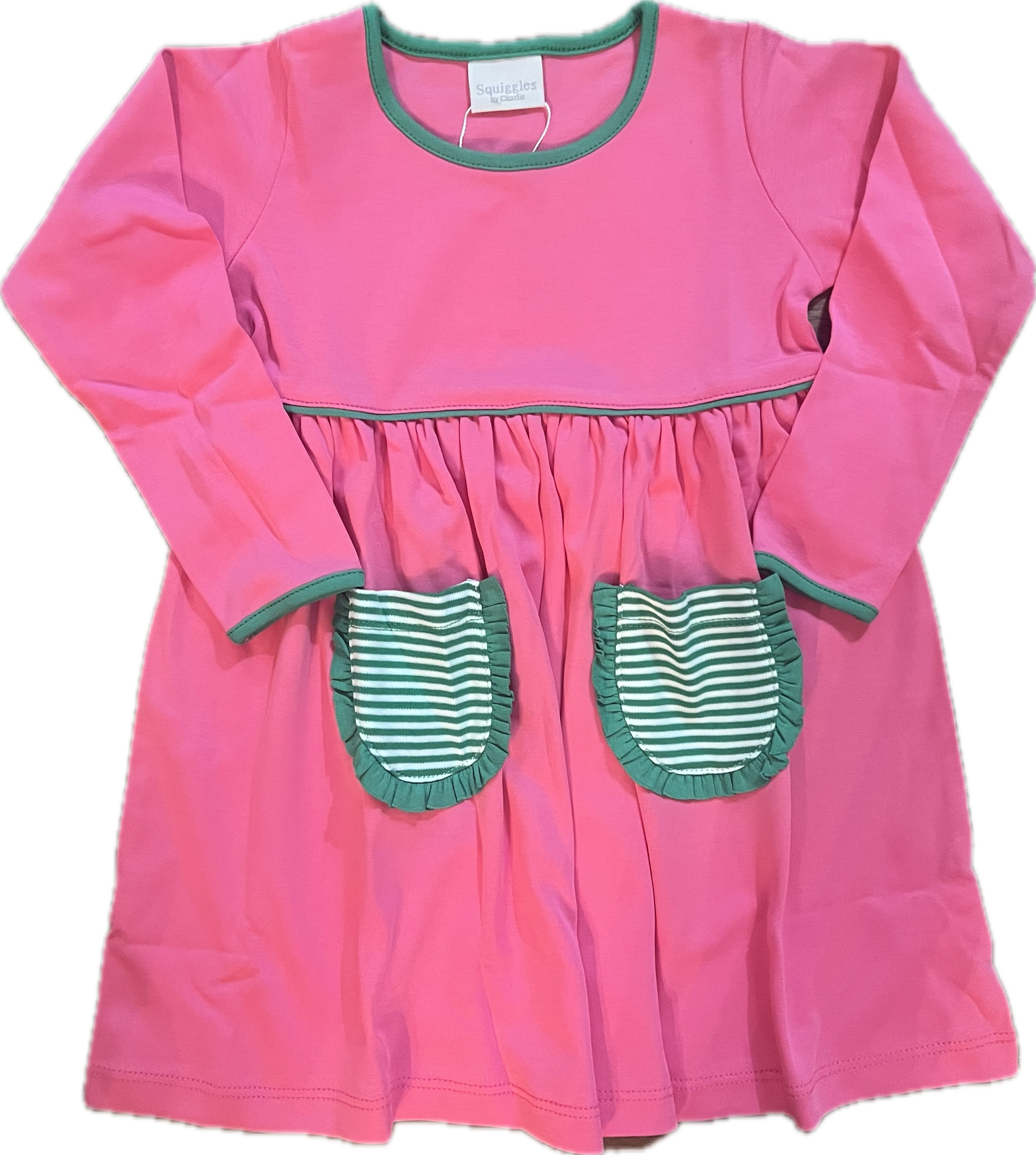 Hot pink and green trim pocket dress. 100% pima cotton.