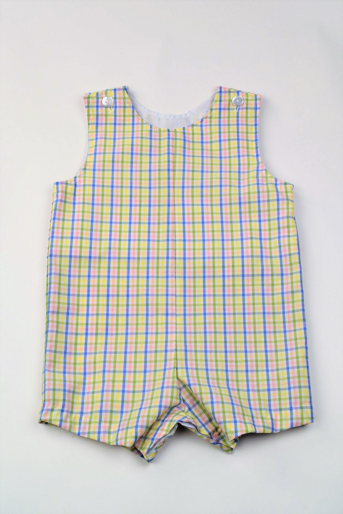 The sweetest pastel plaid shortall. Pair with the Boys Pastel Plaid Short Set or the Girls Pastel Plaid Dress. Made in the USA!