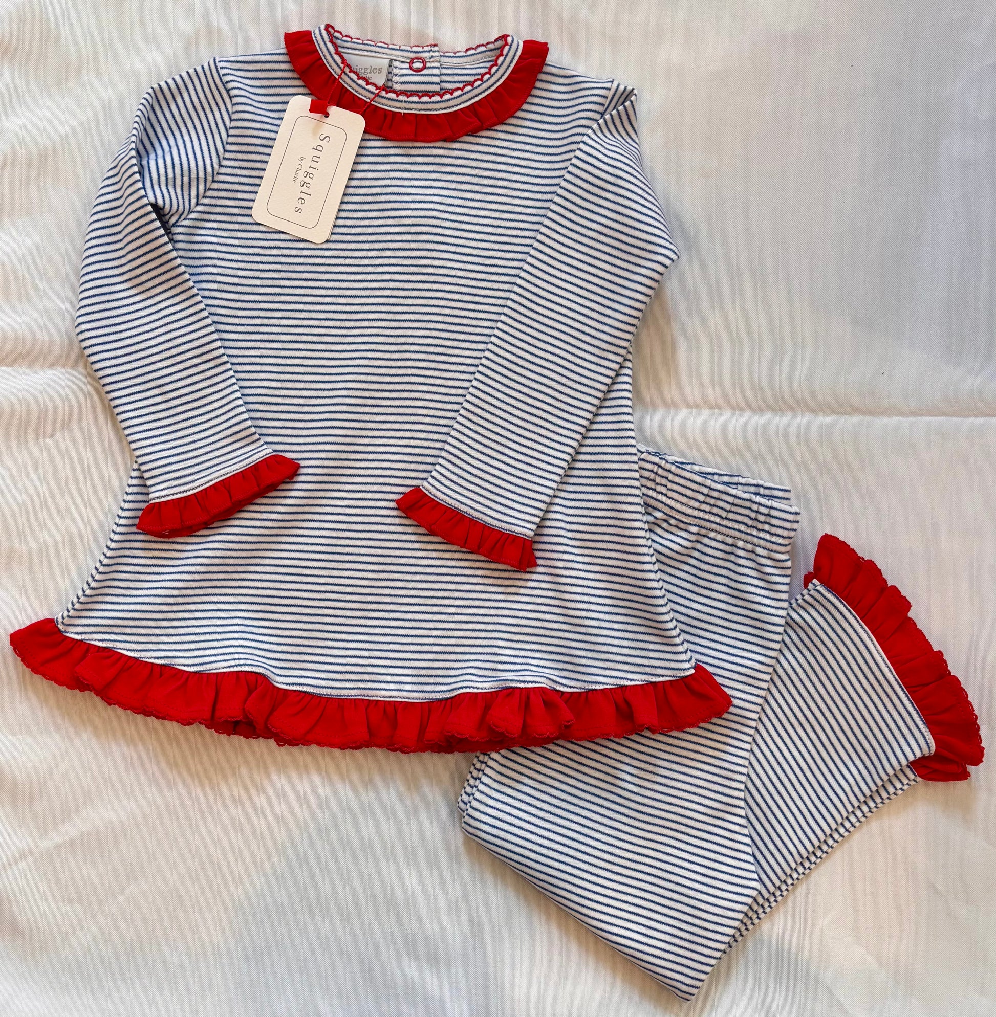Pima Cotton Ruffle Strip Pant Set