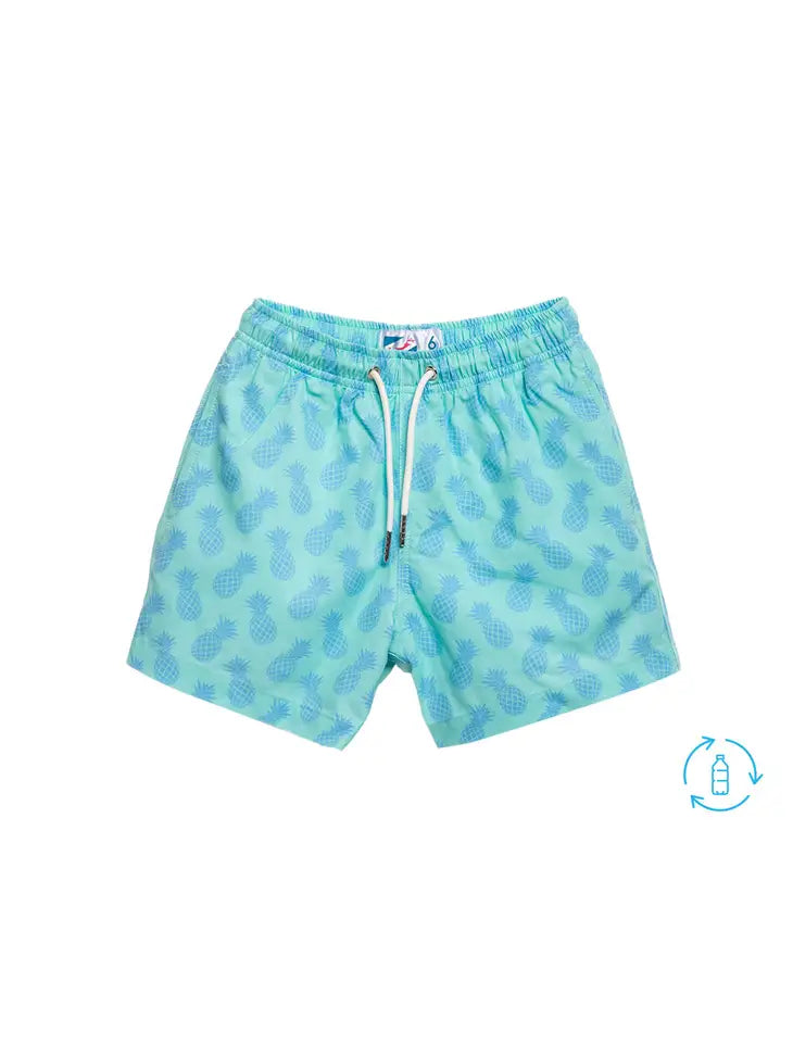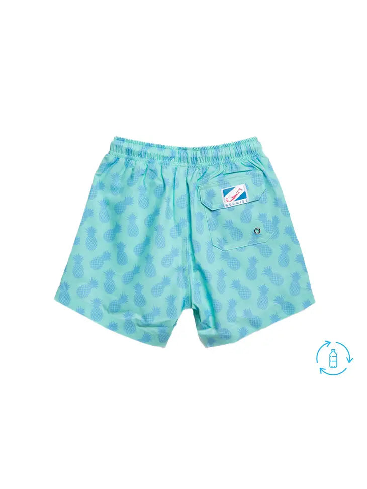 Pineapple Aqua Swim Trunks by Bermies. Kids are all about comfort and that is why they will absolutely love their Bermies. Our boys swim trunks are made out of 90% recycled polyester and 10% lycra which means these swimsuits are stretchy, breathable, fast-drying, and, most importantly, extremely comfortable. Compression Liner