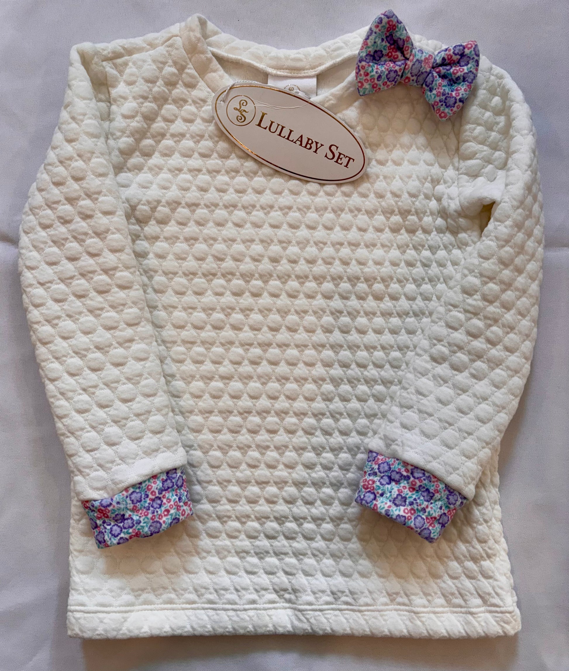 Quilted Pullover with Floral Bow